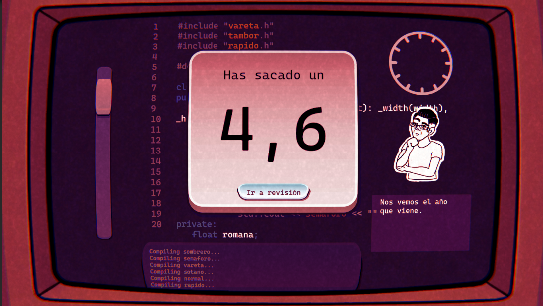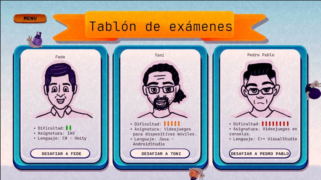 Un juego sencillo y divertido en el que deberás encadenar palabras en un entorno de examen de la Facultad de Informática, desafiando a los profesores para conseguir la máxima calificación en el menor tiempo posible. ¿Podrás aprobar todas las asignaturas?